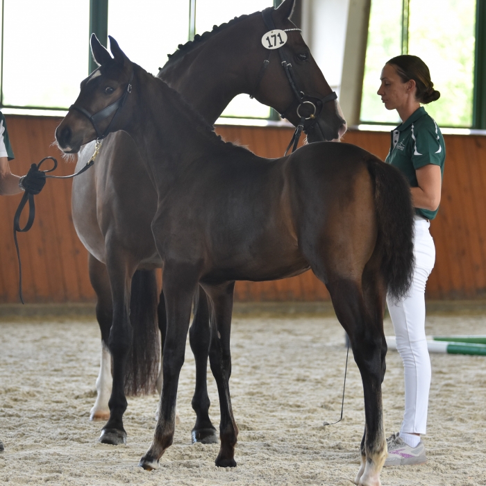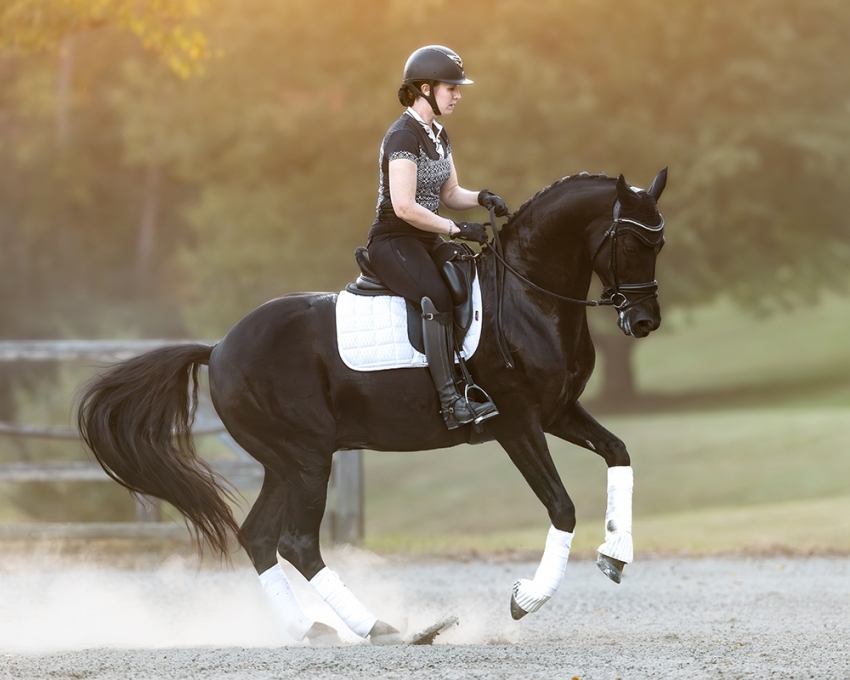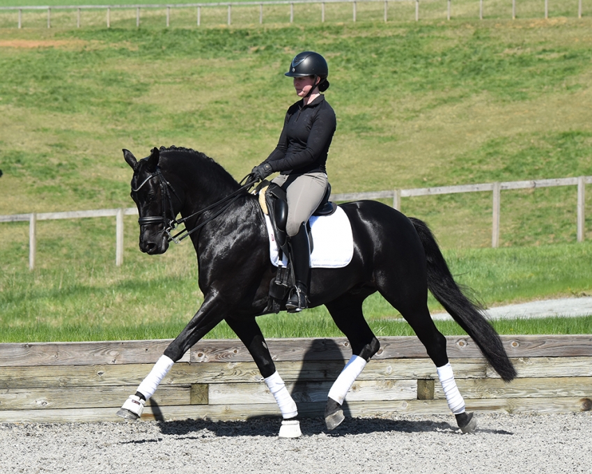 This charming black stallion is the perfect fit for breeders seeking a beautiful modern type, light-footed movement, and excellent trainability. Bred in the US by Avalon Farm, Fürst was exported to Germany as a young prospect and completed his 50-day test where he earned highlight scores of 9 for character and 8.5 for his willingness to work. Upon returning to the US, Fürst was paired with Jannike Gray for a memorable 2022 show season earning 6th in the USDF Region 8 Fourth Level Championship and capturing the Stallion Championship for the USDFBC New England Series Finals with a score over 80%. Partnered with Brittany Stanley in 2024, Fürst brought home top ribbons at Fourth Level and Prix St. Georges.