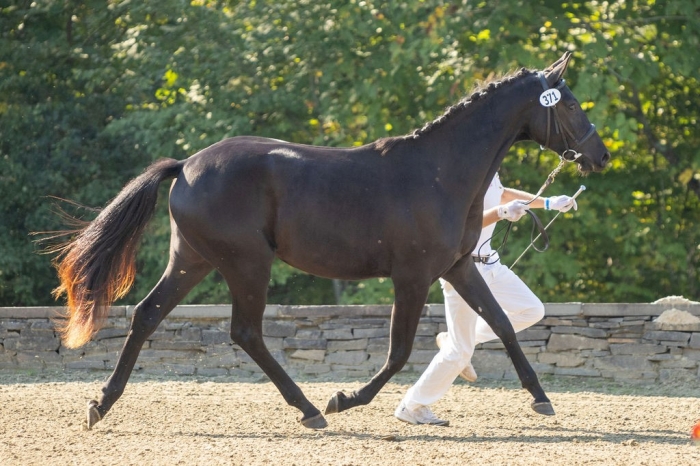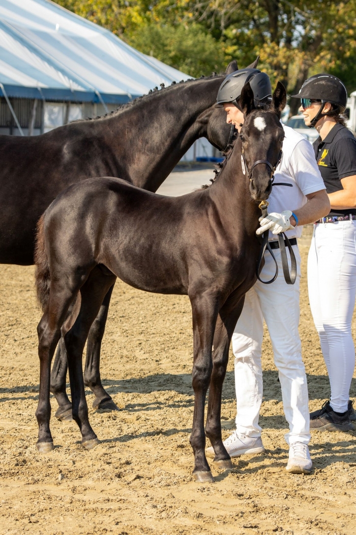 Fürst’s sire, Fürstenball, is for the excellent type, rideability, and outstanding walk that he gives his offspring. Fürstenball’s has more than 90 approved sons and is currently ranked 14th on the WBFSH Dressage Sire rankings. Fürst’s dam Etched in Black has been exceptionally successful showing in-hand, earning the title of USDF Dressage Sport Horse Breeding 4-Year Old & Older Broodmare Horse of the year and USDF North East Series Mare Champion in 2023. Her sire Gribaldi was a Grand Prix competitor who has also proven himself as a sire of top International competitors, including the legendary Totilas.